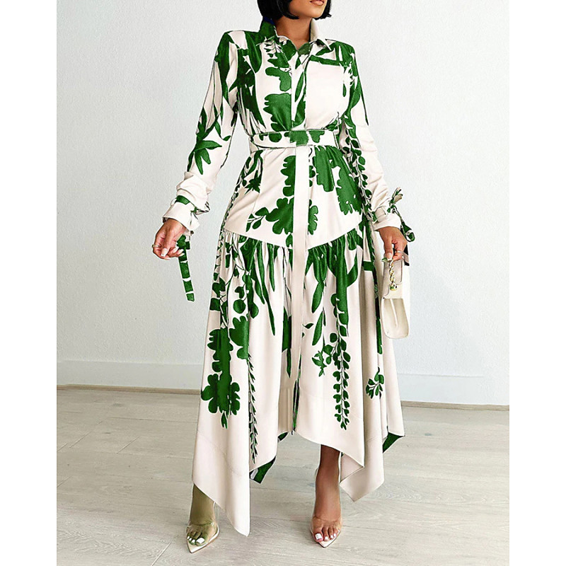 Women's Midi Dress Shirt Dress Floral Dress Print Dress Modern Daily Outdoor Going out Regular Fit Floral Long Sleeve Shirt Collar Black Wine Green Dark Blue Spring Fall