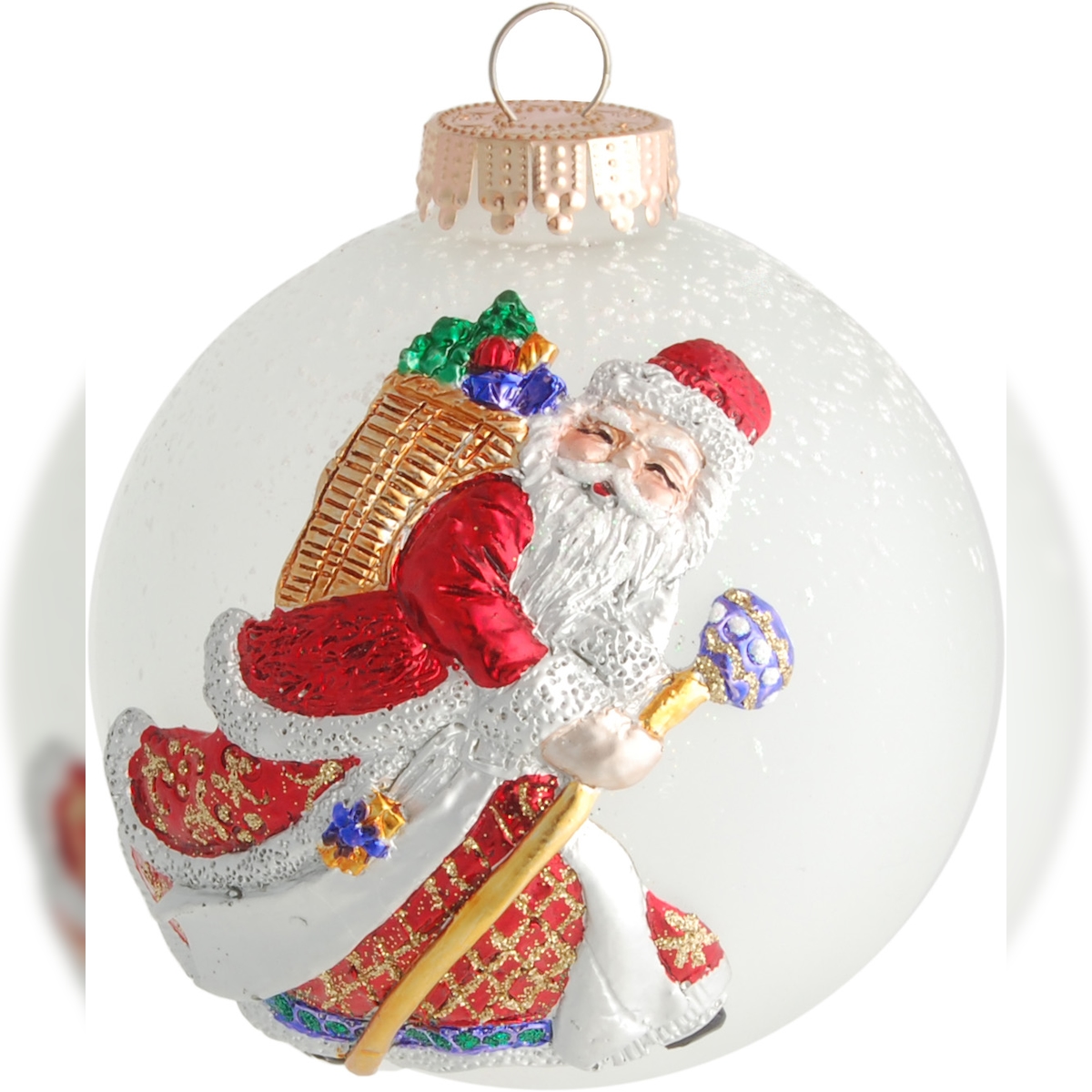 Krebs Glas Lauscha Weiß matt 10cm Glaskugel mit 3D-Santadekoration (1 Stück)