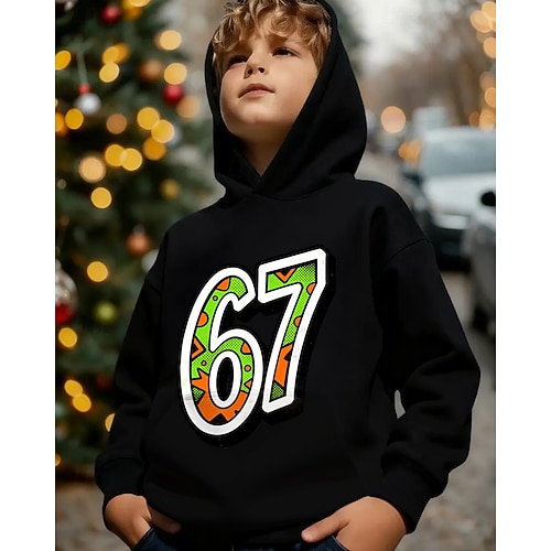 Unisex 3D Grafik Lustiger Slang 67 Kapuzensweatshirt Pullover Langarm 3D-Druck Frühling Herbst Sport Mode Streetwear Kinder 4-12 Jahre Mit Kapuze Lässig Täglich Outdoor Normale Passform