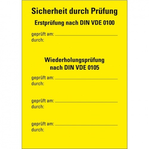 König Werbeanlagen Dreifke® Prüfnachweis Typ B, Erstprüfung nach VDE 0100/0105, Folie, ablösbar, 105x148mm