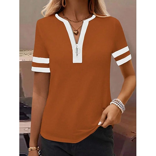 Per donna Maglietta Semplice Moda Moderno Casual Manica Corta Scollo a V Top Regolari Quotidiano Weekend Nero Vino Verde militare Blu Cachi Estate Primavera