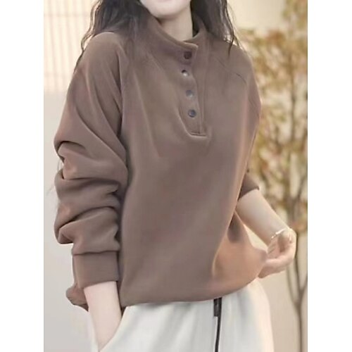 Per donna Felpa Pullover Semplice Casual Manica Lunga Dolcevita Top Regolari Streetwear Abbigliamento Quotidiano Bottoni Nero Bianco Rosso Viola Verde Autunno Inverno