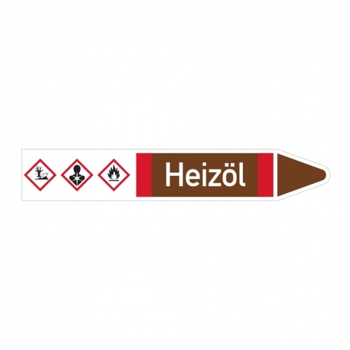 Aufkleber I RKZ-Etikett Heizöl EL,rechts,DIN 2403,braun/weiß/rot,Ø 60-90mm,310x52mm,3/Bogen