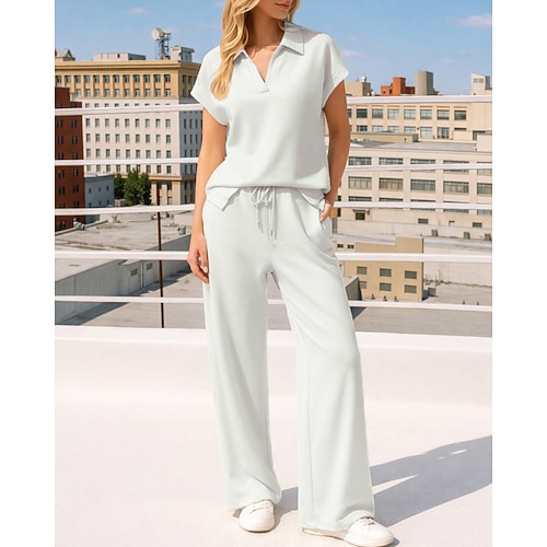 Per donna Set di tute e pullover Tuta da 2 pezzi Abiti da salotto Coulisse con tasca Tinta unita Set di Abbigliamento Sportivo Estate Primavera Caffè leggero Nero Allenamento in Palestra Jogging Corsa