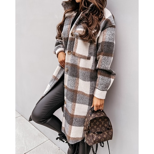 Per donna Giacca Sherpa Confortevole Traspirante Bottoni Elegante Casual Plaid Vacanza Streetwear Casuale Abbigliamento quotidiano Monopetto Regolare Collo ripiegato Vestibilità regolare Manica Lunga