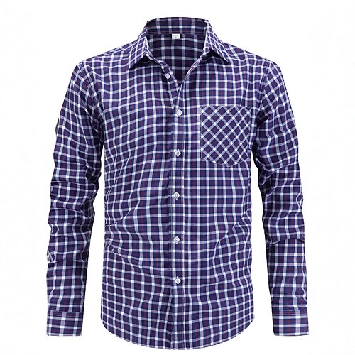 Men's Dress Shirt Collared Shirt Plaid Wedding Office / Career Light Blue Blue Sky Blue Light Purple Long Sleeve Turndown Spring Fall Clothing Apparel