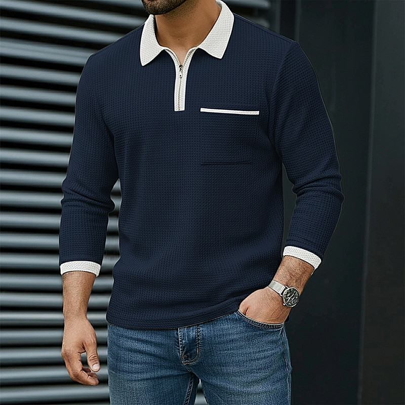 Men's Waffle Polo Shirt Quarter Zip Polo Daily Holiday Quarter Zip Long Sleeve Fashion Modern Plain Pocket Spring Fall Regular Fit Black White Navy Blue Orange Light Grey Dark Gray Waffle Polo