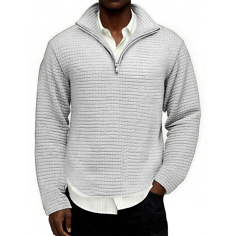 Men's Waffle Polo Shirts Textured Home Standing Collar Quarter Zip Long Sleeve Basic Solid Color Knitted Spring Fall Standard Fit Light Blue Black White Gray Waffle Polo Shirts