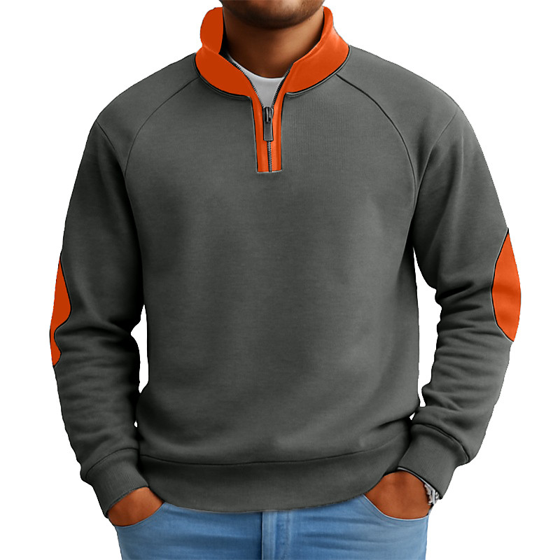 Men's Sweatshirt Pullover Hoodie Sweatshirt Quarter Zip Sweatshirt Black Navy Blue Khaki Light Grey Dark Gray Standing Collar Plain Patchwork Casual Daily Sports Outdoor Streetwear Cool Sportswear