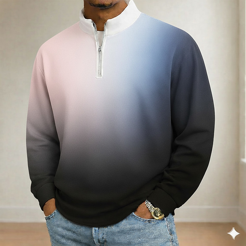 Men's Gradient Polo Shirts Long Sleeve Standing Collar Athleisure Vacation Athleisure Casual Daily Zipper 3D Print Spring Fall Blue Pink Light Brown