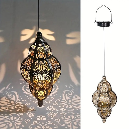 Barocke, hohle LED-Hängelaterne mit Solarbetrieb für den Außenbereich, wasserdicht, für Garten, Hof, Wege, Rasen, Terrasse, Partys, Feiertage, warmes Lila blaue Lichter