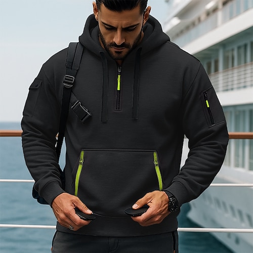 Per uomo Felpa con cappuccio Felpa con cappuccio e zip corta Aalbicocca Nero Blu Reale Cachi Grigio chiaro Con Cappuccio Semplice Coulisse Tasca Zip a un quarto Sport Outdoor Quotidiano Ferie