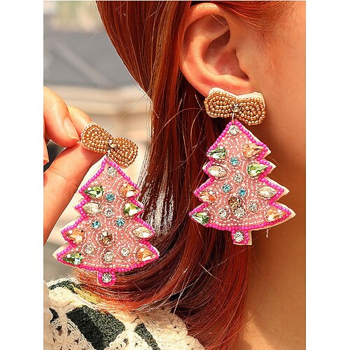 Weihnachtsschmuck für Damen: Perlenohrringe in Tannenbaumform mit roter Schleife und Edelsteinverzierungen – festlicher Weihnachtsschmuck für die Weihnachtsfeier