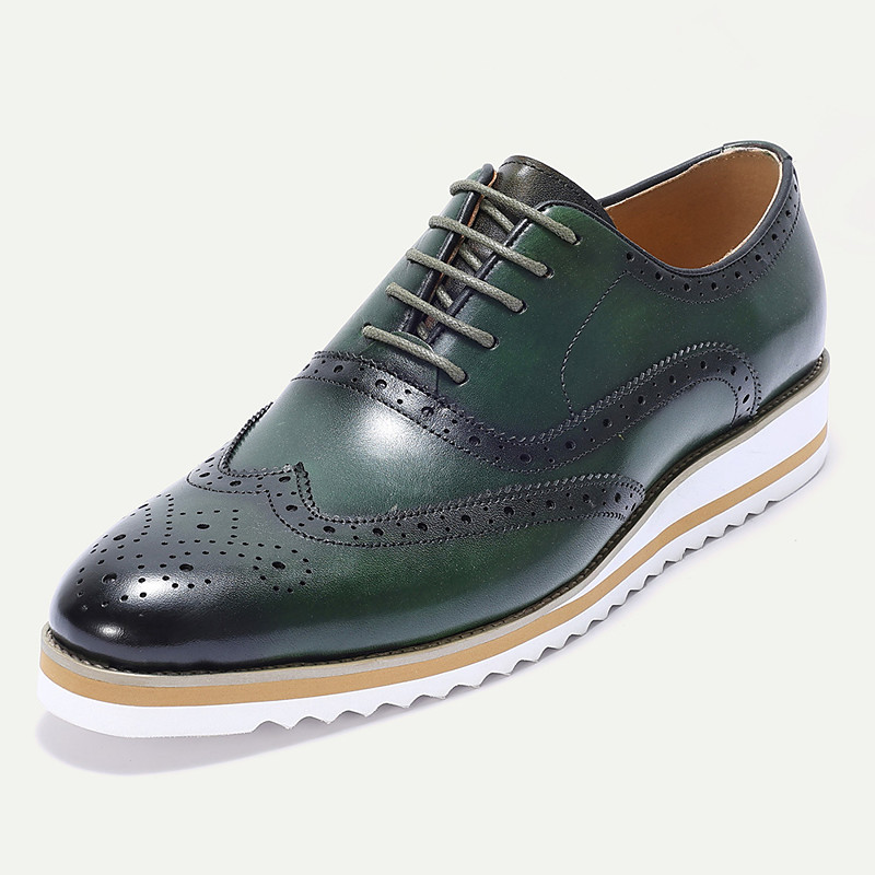 Men's Genuine Leather Blue Wingtip Brogue Oxford Shoes – Stylish Lace-Up Business Dress Shoes for Weddings, Parties and Daily Office Wear
