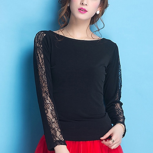 Top da ballo latino da sala, in pizzo, di colore puro, per donna, a maniche lunghe, per rumba, valzer