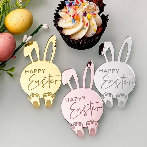 30 pezzi di ciondolo a forma di specchio a forma di coniglietto pasquale, decorazione per cupcake, etichetta regalo