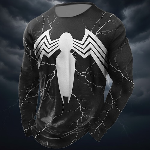 Herren 3D Spinnen T Shirt Langarm T-Shirt 3D-Druck Rundhalsausschnitt Hemd Mode Übertrieben Straße Täglich Schwarz Weiß Sommer Frühling Herbst Bekleidung S M L XL XXL XXXL