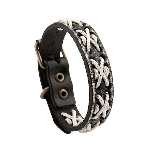 Herrenarmband aus geflochtenem Leder im Bohème-Stil im Vintage-Stil mit Schnallenverschluss und geflochtener Kordelverzierung – verstellbare Westernmanschette für die Freizeit und als Geschenk