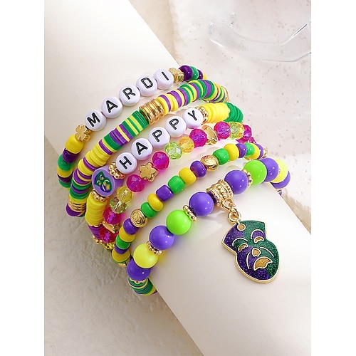 set di braccialetti in acrilico da donna, design multi-motivo, tema martedì grasso, perfetto per carnevale e festività