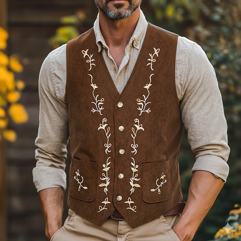 Men's Corduroy Vest Waistcoat Formal Wedding Vacation Casual Fashion Classic Spring Fall Pocket Buttons Comfortable Floral Single Breasted V Neck Lapel Regular Fit Black Navy Blue Brown Vest