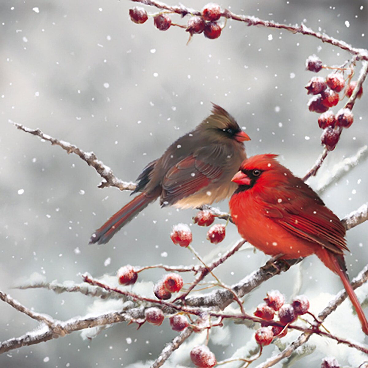 ti-flair 20 Servietten Papier 33x33cm 3-lagig - hochwertige Einweg Papierservietten Weihnachtsservietten Kardinal Vögel am Beerenzweig Motivservietten Winter