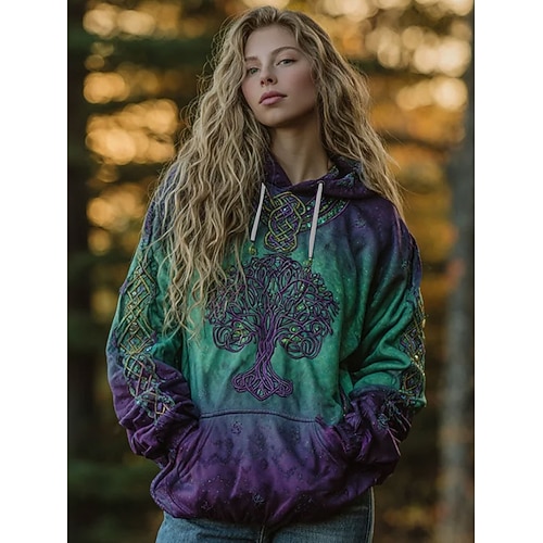 3D-Druck Vintage Boho Kapuzenpullover Damen Patchwork Kapuzenpullover Sweatshirt Floral Pullover Sweatshirt Grafik Tribal Lässig Langarm Kapuzen Party Abendbekleidung Street Alltagskleidung Grün