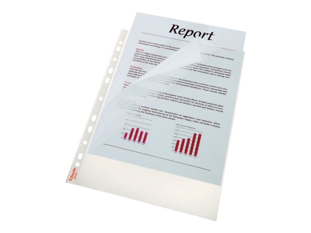 Plastlomme A4 Esselte glasklar - åben i top og side - (10 stk.)