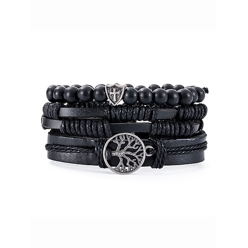 Set di braccialetti multistrato in vera pelle da uomo – bracciale con perline boho a forma di albero della vita, per occasioni casual, feste e viaggi