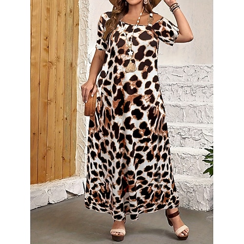 Per donna Taglie Forti Abito Lungo Maxi Abito Vestito Casual Abito a Tubino Abito Estivo Abito Semplice Elegante Caldo Bohemien Casa Lavoro Spiaggia Vestibilità comoda Leopardo Blocco di colori