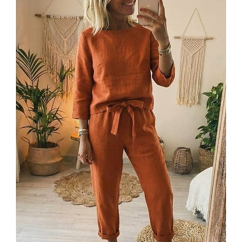 Per donna Set di biancheria in cotone Set di Pantaloni Bolero Top Manica Lunga Girocollo Semplice Coulisse Moda Streetwear Casuale Quotidiano All'aperto Nero Arancione Beige Estate Vestibilità comoda