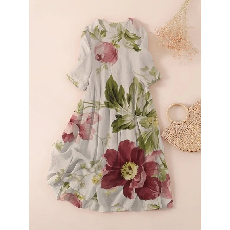 Women's Midi Dress T Shirt Dress Tee Dress A Line Dress Summer Dress Vacation Casual Beach Date Summer Dress Regular Fit Floral Graphic Short Sleeve Crew Neck Light Green Pink Red Light Brown Summer