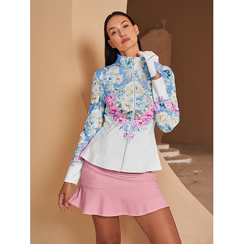 Per donna POLO Bianco Manica lunga Protezione solare Superiore Floreale Autunno Inverno Abbigliamento da golf da donna Abbigliamento Abiti Abbigliamento
