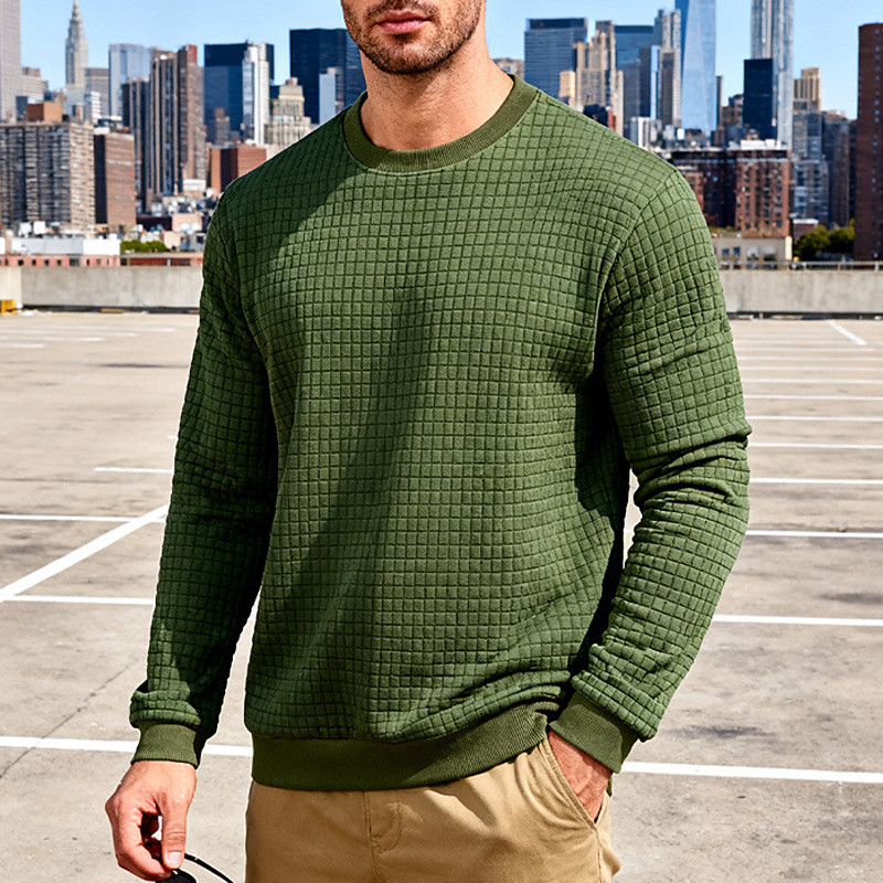 Men's Sweatshirt Waffle Sweatshirt Pullover Hoodie Sweatshirt Wine Red Black White Light Green Navy Blue Crew Neck Plain Textured Casual Daily Sports Outdoor Streetwear Cool Sportswear Spring