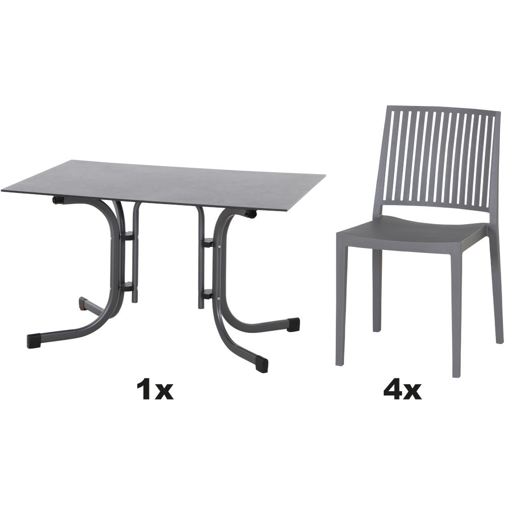 SIENA GARDEN Urban Lights Set 5teilig Lane Stuhl gastrotauglich grau mit Tisch Sola 120x80