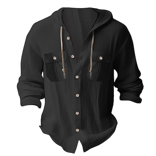 Per uomo Camicia Camicia Estiva Camicia casual Camicia da Spiaggia Camicia con Bottoni Marrone Scuro Nero Bianco Blu marino Azzurro cielo Manica Lunga Semplice Con Cappuccio Vacanza Casuale Tasca