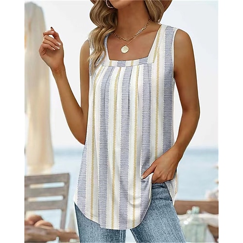 Per donna Camicia Maglietta Tinta unica Floreale Grafico Elegante Classico Moderno Senza Maniche Collo a U Top Regolari Quotidiano Uscire Weekend Patchwork Stampato Nero Bianco Rosso Azzurro cielo