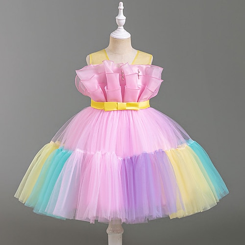 Abito da damigella d'onore bambina Ragazze Abito formale Abiti da sposa Feste Matrimonio Formale Principessa Patchwork Rete Sfumatura Senza Maniche Girocollo Rosa Azzurro cielo Dai 4 anni in su