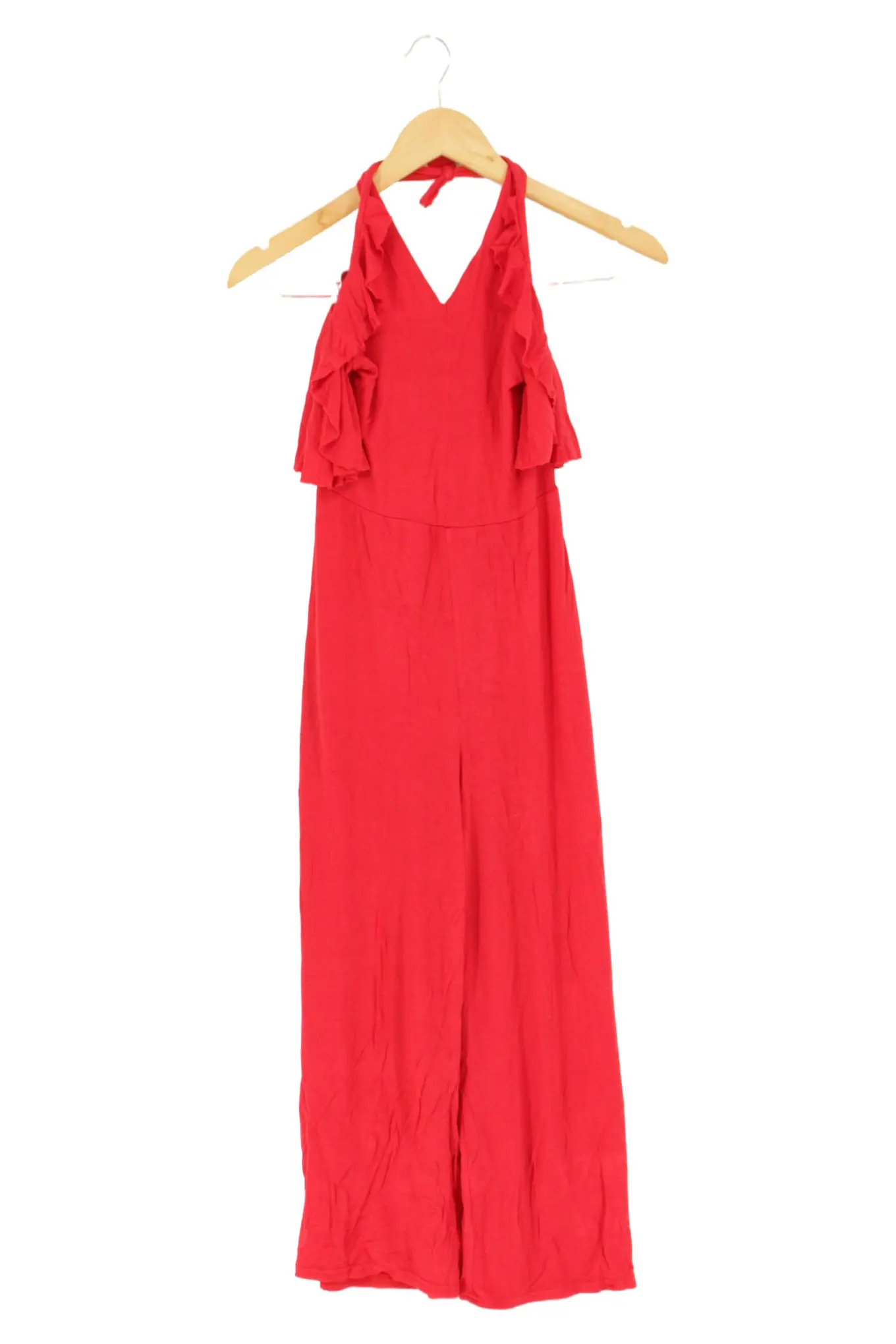 QED LONDON Damen Jumpsuit Rot Gr.38 Ärmellos Rüschen