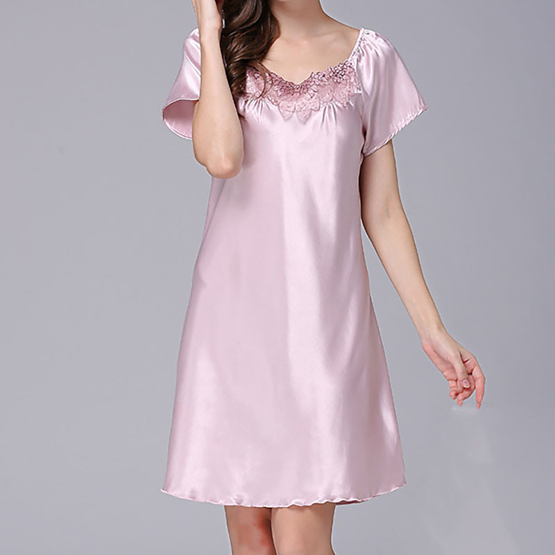 Women's Loungewear Nightgown Fashion Casual Soft Pure Color Patchwork Dress Home Vacation Short Sleeve Crew Neck Lotus Pink Pink Red Camel Summer Spring Fall Regular Fit