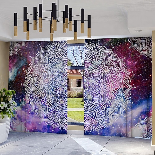2 tende con mandala geometrico artistico, pannelli per tende da finestra in poliestere con tasca per asta, tende con motivo astratto boho, lavabili in lavatrice, adatte per soggiorno, camera da letto,