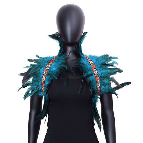 Karneval 2026 Rio Karneval Samba Zubehör Damen grüner Federumhang mit gesticktem Band Brasilien Festival Kostüm