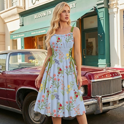 Elegante Anni 1950 Midi Vestito Senza maniche Floreale Linea ad A Costume Per donna Feste Abbigliamento Quotidiano Casual Quotidiano Adulti Vestito Primavera Estate