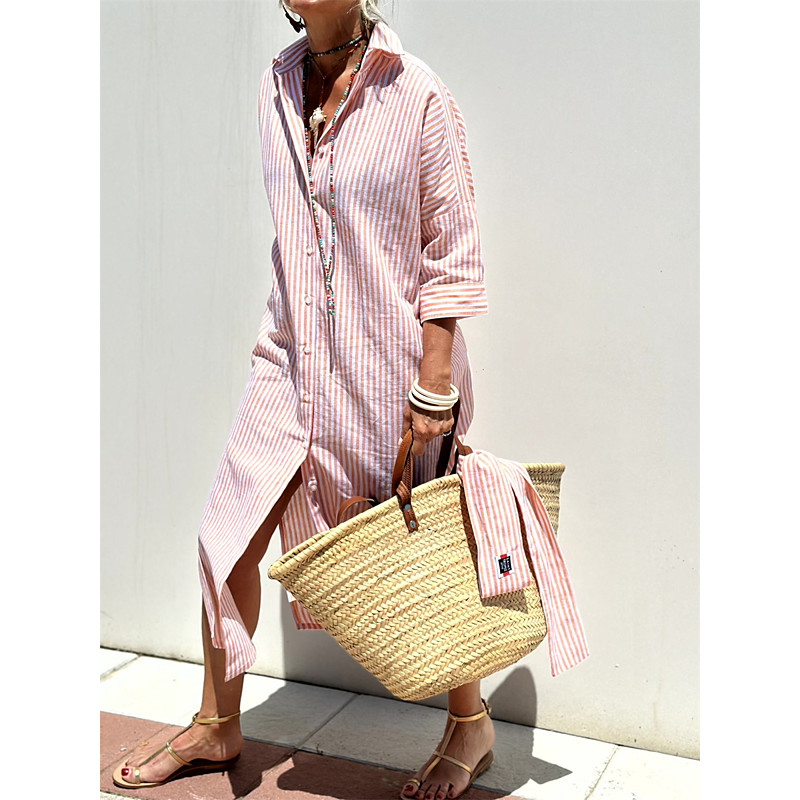 Women's Midi Dress Casual Dress A Line Dress Vintage Cute Stylish Vacation Daily Loose Fit Stripe Half Sleeve Shirt Collar Pink Blue Summer Spring Fall