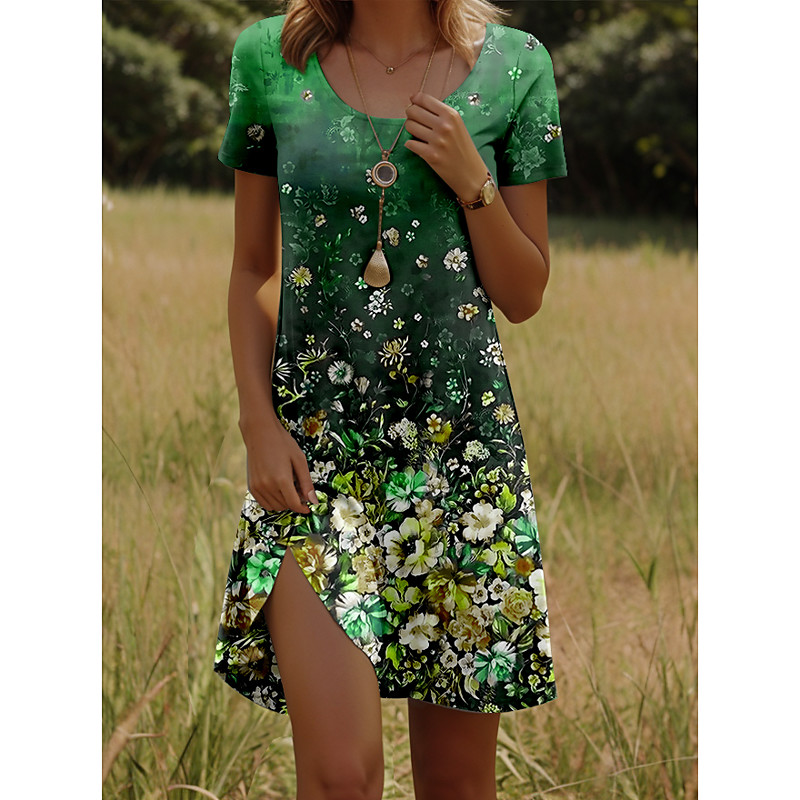 Women's Dress Set A Line Dress Summer Dress Elegant Casual Ombre Floral Print Midi Dress Half Sleeve V Neck Formal Vacation Blue Dark Green Orange Summer Spring Regular Fit