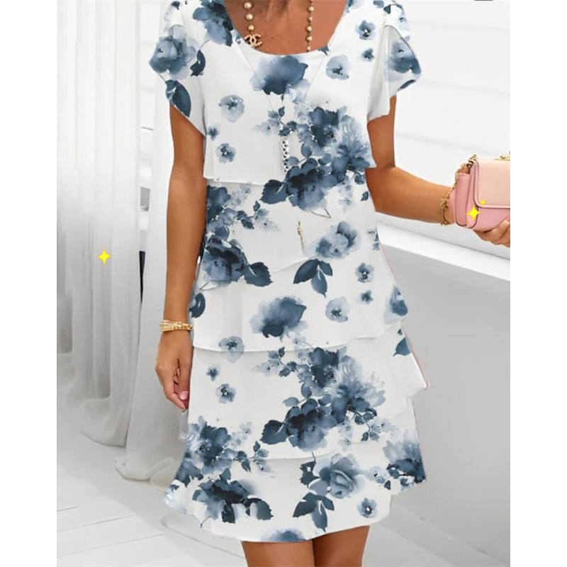 Women's Mini Dress Casual Dress Chiffon Dress Summer Dress Fashion Modern Daily Beach Weekend Regular Fit Flower Short Sleeve Crew Neck Blue Pink Lavender Dark Blue Summer Spring