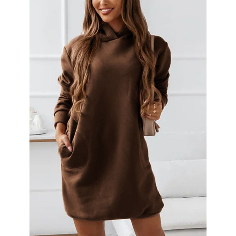 Women's Mini Dress Hoodie Dress Casual Dress Fashion Modern Daily Office Vacation Loose Fit Plain Long Sleeve Hooded Black White Royal Blue Brown Spring Fall Winter