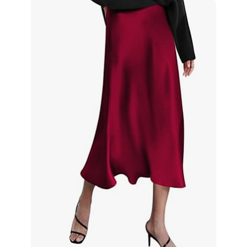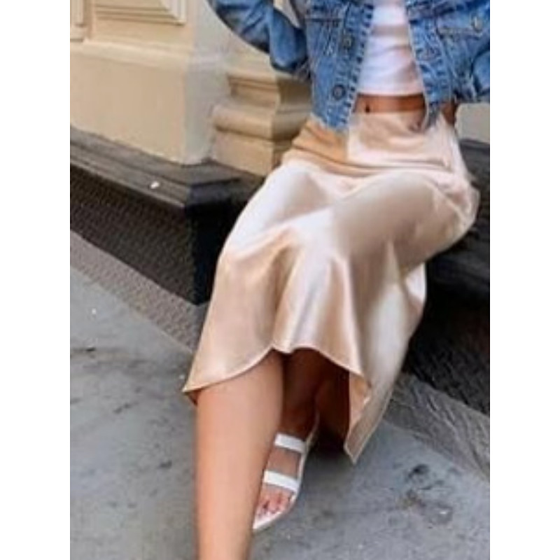 Women's Skirt A Line Elegant Fashion Casual Midi High Waist Skirts Plain Inelastic Street Daily Blue Wine Black White Spring Satin Polyester