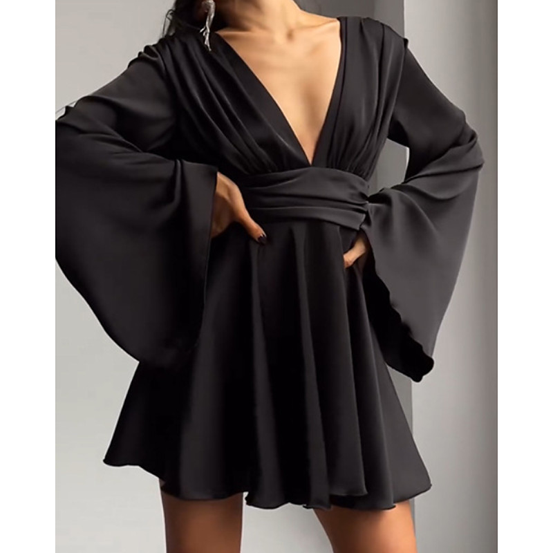 Women's Mini Dress Satin Dress Prom Dress Party Dress Cocktail Dress Fashion Modern Evening Party Party Cocktail Party Regular Fit Plain Long Sleeve V Neck Black Brown Green Gray Spring Fall
