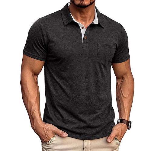 Per uomo Polo Maglia da golf Casuale Vacanza Bavero Manica Corta Moda Moderno Blocco di colori Blocco di colore Bottoni Estate Primavera Vestibilità regolare Nero Bianco Vino Cachi Grigio chiaro