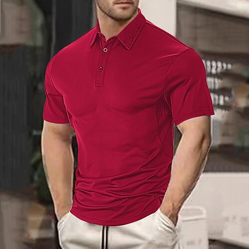 Per uomo Polo Maglia da golf Affari Casuale Colletto Polo a Coste Manica Corta Moda Essenziale Tinta unica Semplice Bottoni Estate Primavera Autunno Vestibilità regolare Nero Bianco Rosa Rosso Blu